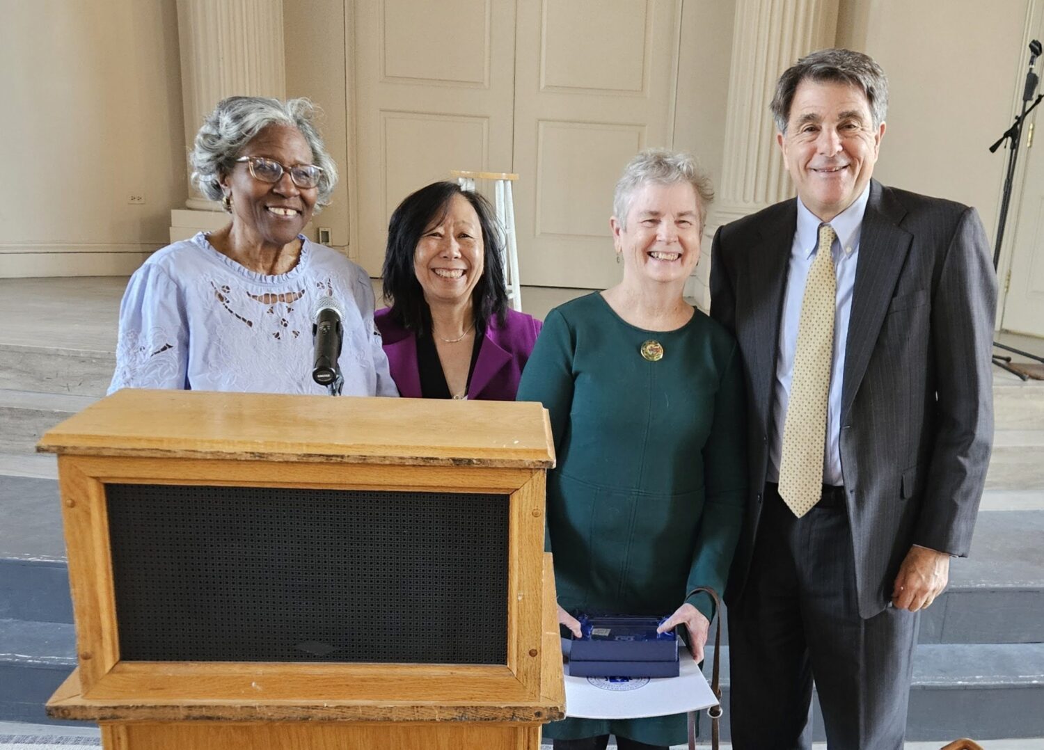 Dozens of public officials, civic leaders, family, and friends gathered in War Memorial Hall at Newton City Hall for the ceremony. Mondschein, who died in 2018, was a founding member of the city’s Fair Housing Committee and a leading expert on the Fair Housing Act in New England.
