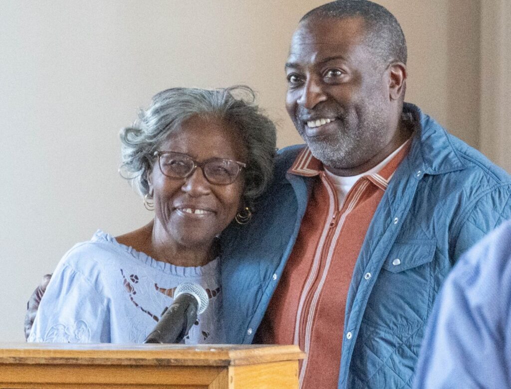 As McNeil neared the end of her speech, she looked across Memorial Hall and saw her son, Michael, who had traveled from New Jersey for the event – an unexpected sight that caught her off guard.