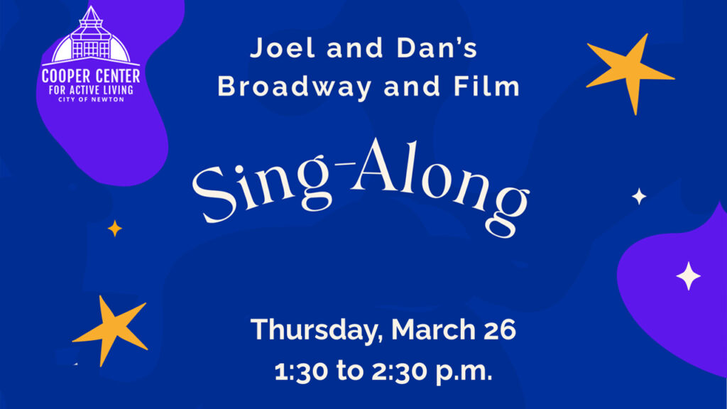 Sing along with Joel Light and Dan Moore at the Cooper Center on Thursday, March 26 from 1:30 – 2:30PM at the Cooper Center (345 Walnut Street, Newtonville). Joel and Dan will offer an engaging, interactive program featuring live piano and beloved songs, many of which are from the 1940s,…