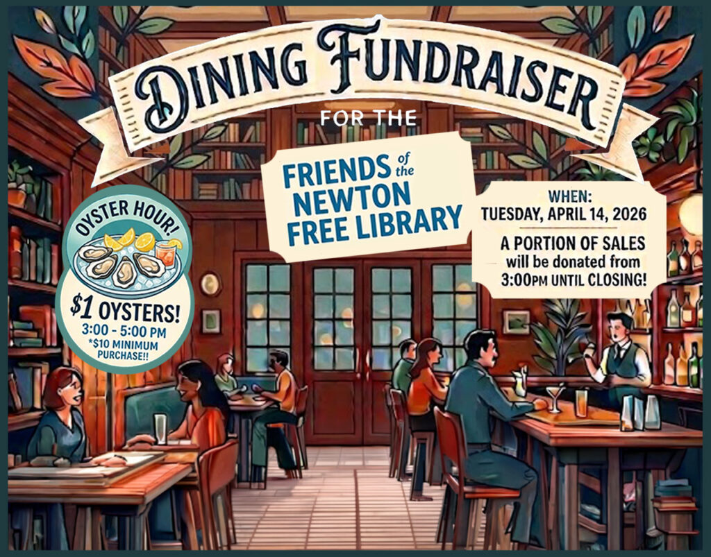 On Tuesday, April 14, 2026 from 3-10PM, The Bluebird Bar and Grill (1293 Washington St, West Newton) will be donating a portion of its sales to The Friends of the Newton Free Library.