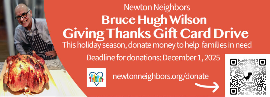 Newton Neighbors invites you to join them in supporting local families this holiday season through donations to The Bruce Hugh Wilson Giving Thanks Gift Card Drive. Your donations will go to grocery gift cards to families in need across Newton and nearby communities. Last year they raised over $25,000, helping more…