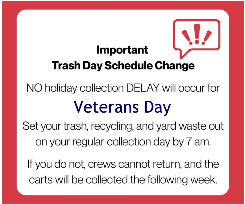 The City is no longer delaying trash/recycling pickup on weeks that have these holidays: Residents should set out trash, recycling, and yard waste on regular trash day for these weeks. If you miss the collection, you’ll need to wait until the following week for pickup. Collection crews will not be…