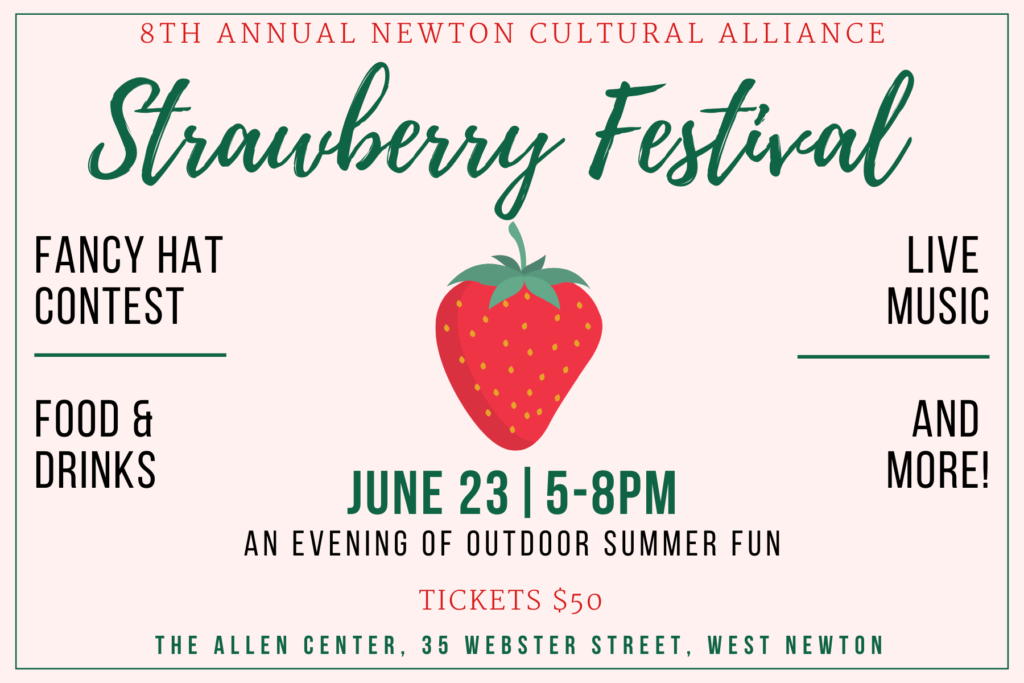 Have you been curious about that historic yellow building on the corner of Webster and Cherry Streets? Here is the return of the annual Newton Cultural Alliance Strawberry Festival as a fundraiser to support the work of the NCA and of the Allen Center, now newly opened for performances in their Great…