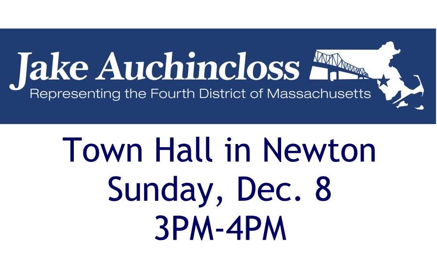 Rep. Jake Auchincloss invites the public to a town hall meeting on Sunday, December 8, 3PM-4PM. He said, “This is an opportunity for you to raise questions, hear updates on what I’m doing to represent the district’s values & advance its priorities, and receive assistance with casework.” Pre-registration is required…