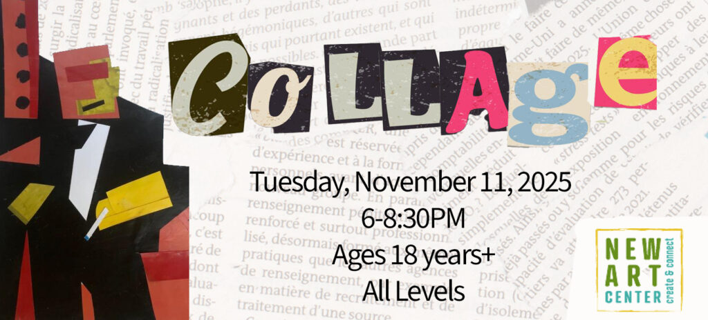 Join local artist Caryl Hull Leavitt at the New Art Center for a hands-on workshop — Create Modern Collages — on Tuesday, November 11 from 6-8:30PM. Explore loose shapes, color, and pattern as you cut, rip, and paste your way to one or two unique masterpieces inspired by modern masters…