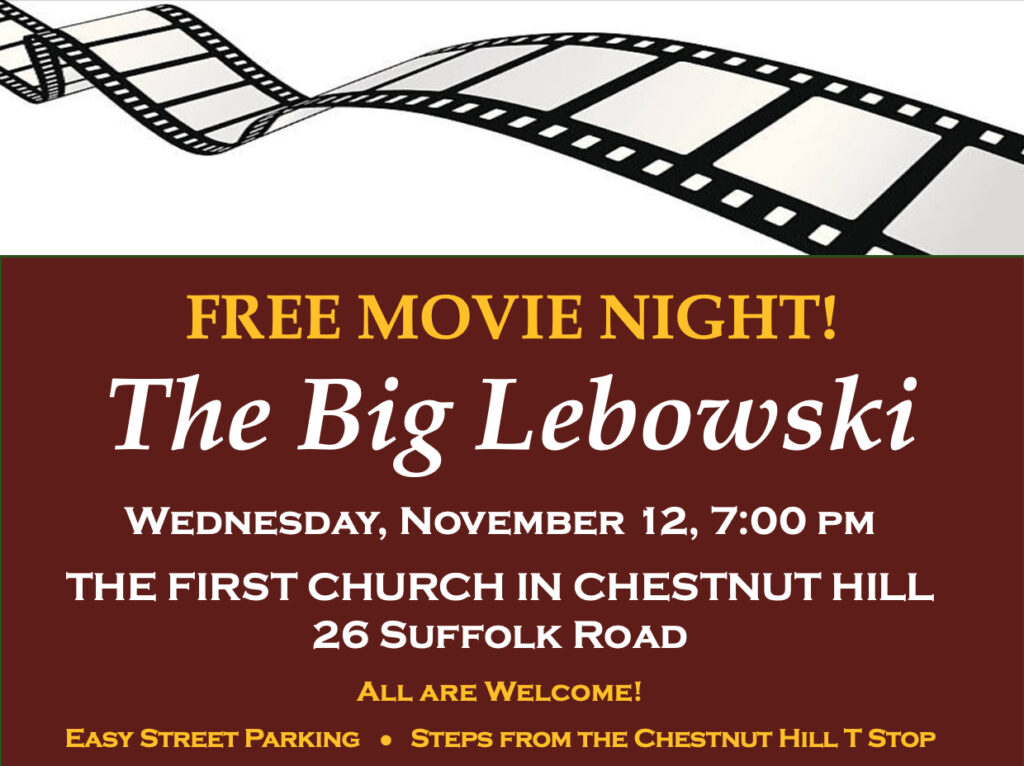 The First Church in Chestnut Hill will be showing The Big Lebowski at their movie night on Wednesday, November 12 at 7PM. All are welcome. The event is free and snacks will be provided. The First Church in Chestnut Hill is located at 26 Suffolk Road, steps from the Chestnut…