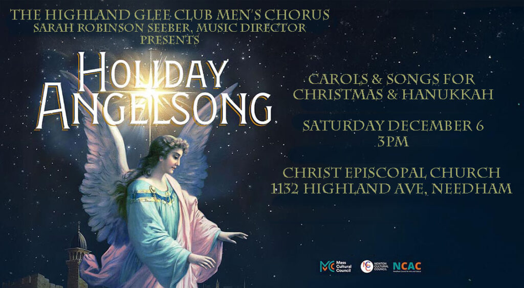 Warm and brighten your holiday season this year with the Highland Glee Club Men’s Chorus‘s Holiday Angelsong on Saturday, December 6 at 3PM at the Christ Episcopal Church (1132 Highland Ave, Needham). Holiday Angelsong is a program of some of the most beautiful music ever written for the holidays – Palestrina,…