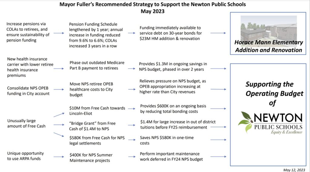Mayor Fuller has put together a summary of a financial program to help fill some of the Newton Public Schools (NPS) budget gaps and the Horace Mann project after the failure of the general override. The plan includes the following: Increase pensions via COLA: The plan, which the Retirement Board…