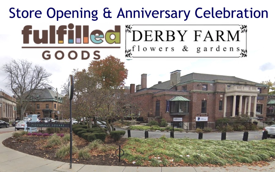 Fulfilled Goods will celebrate the opening of its second store — located in Newton Center inside Derby Farm Flowers (1280 Centre Street) — on Saturday, September 20, 11AM-6PM. Both retailers will feature deals and discounts, product samples, raffles, and giveaways. It’s also the third anniversary of the opening of Fulfilled…