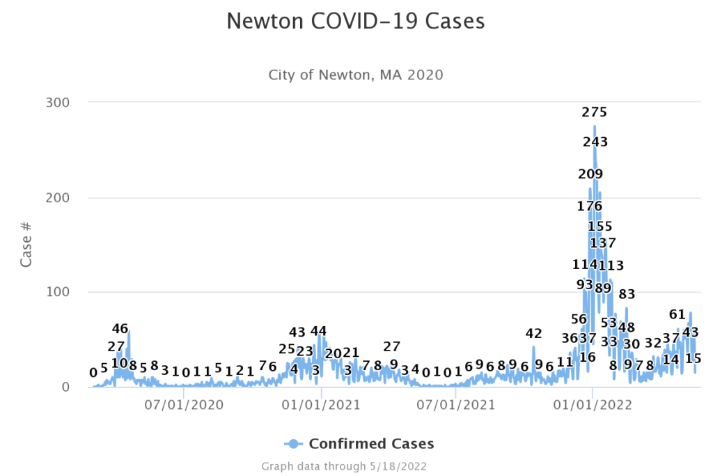 The number of confirmed positive COVID-19 cases has risen to 14,600 and the number of COVID-19 related deaths has remained at 202. The Newton data can be found here and the NPS data can be found here.
