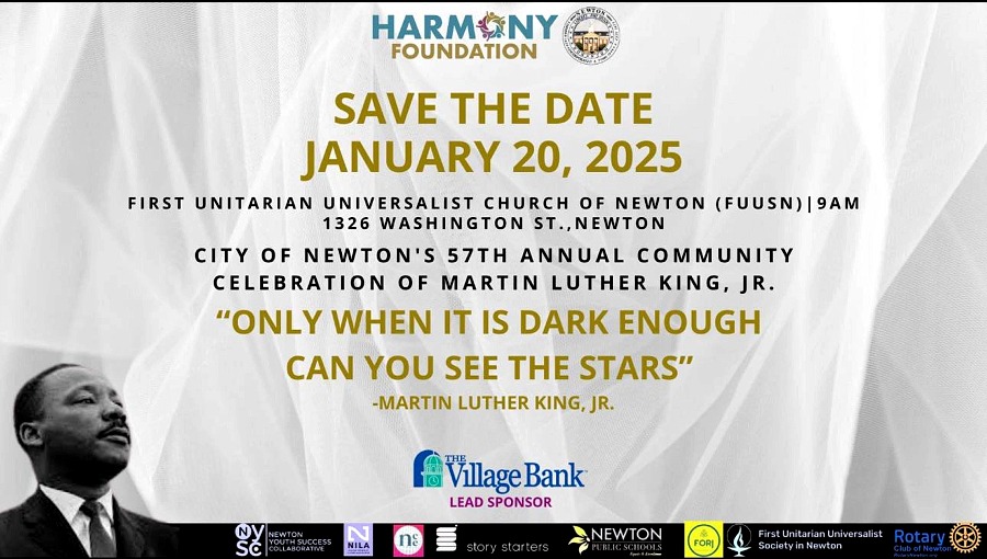 Newton’s 57th annual Community Celebration of Martin Luther King, Jr. will be held on January 20, 9AM-11AM at the First Unitarian Universalist Society in Newton (1326 Washington Street, West Newton). Register here. Printed copies of the program will be available at the event, and the program may be downloaded here.…