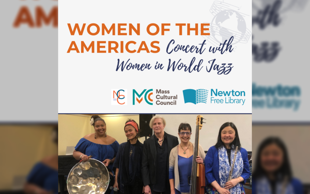 The Newton Free Library will present a Women of the Americas Concert featuring Women in World Jazz. The concert will feature jazz compositions from different eras of the United States by Lil Hardin, Carla Bley, violinist Regina Carter, and more. The band will not only perform works but educate participants…