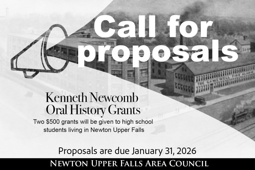 Two Kenneth Newcomb Oral History Grants of $500 each are available to high school students living in Newton Upper Falls. A grant recipient must reside in Newton Upper Falls and be a freshman, sophomore, or junior in high school (9th to 11th grade). Public and private school students are eligible.…