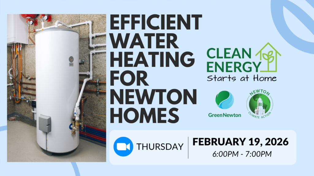 Newton homeowners and residents are invited to a free virtual educational webinar, Efficient Water Heating for Newton Homes, sponsored by Green Newton and the City of Newton Climate & Sustainability Team. The webinar will take place Thursday, February 19 from 6-7PM via Zoom. Participants will gain key insights into energy-efficient…