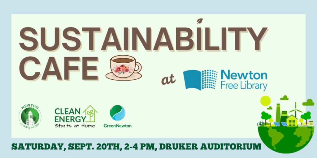 Green Newton is hosting a Sustainability Cafe in the Druker Auditorium at the Newton Free Library (330 Homer Street) on September 20, 2PM-4PM, where you’ll explore real-life examples of sustainable living! At this engaging drop-in event, you will meet local homeowners that will showcase the eco-friendly upgrades they’ve made to…