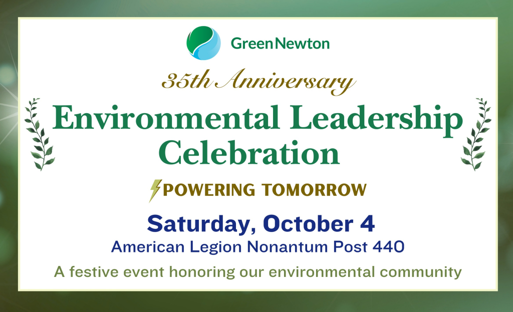 Green Newton will host the Environmental Leadership Celebration at the American Legion Nonantum Post 440 (295 California Street, Nonantum) on Saturday, October 4 from 6:30–9:00PM. The event will celebrate Newton’s vibrant environmental community while honoring three outstanding leaders with the 2025 Louise Bruyn Environmental Leadership Awards. This year’s honorees are:…