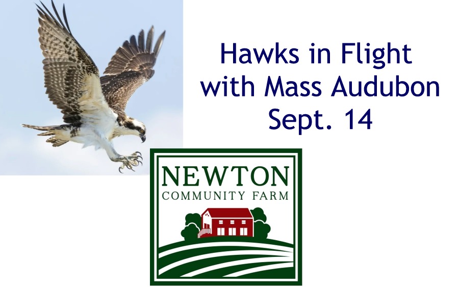 Join Newton Community Farm (303 Nahanton Street) on Sunday, September 14 at 1PM for Hawks in Flight, an exciting event featuring a raptor expert from Mass Audubon. This special program will feature a live bird of prey, giving you an up-close encounter with one of these magnificent birds while learning about their…