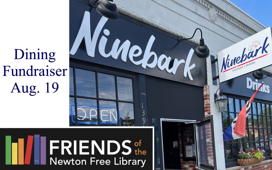 The Friends of the Newton Free Library, a 501(c)(3) non-profit organization, will host a dining fundraiser at Ninebark Kitchen+Drinks (1391 Washington Street, West Newton) on August 19, 2025 from 12PM to 9PM. Ninebark will donate a portion of the proceeds to The Friends. Through fundraisers such as this one, book…