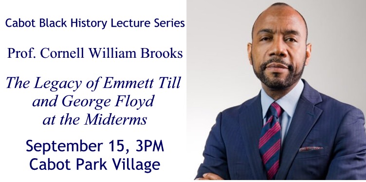 On September 15 at 3PM, Harvard Kennedy School Prof. Cornell William Brooks will speak about The Legacy of Emmett Till and George Floyd at the Midterms in the Community Room at Cabot Park Village (280 Newtonville Ave.). This lecture is free and open to the public. Covid protocols: Masks are…