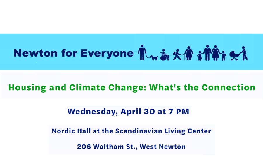 Newton for Everyone will host a talk by Dan Ruben — Housing and Climate Change: What’s the Connection? — on April 30 at 7PM, both online and in person at the Scandinavian Living Center (206 Waltham Street, West Newton). Register for attending in-person or online. Long-time Newton resident Dan Ruben teaches…
