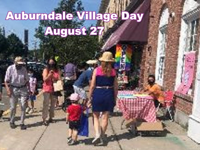 The Auburndale Neighborhood Association invites Newton residents to Auburndale Village Day on Saturday, August 27, 10AM-Noon. Auburndale’s stores and restaurants will hold sales and special promotions, while the Auburndale Community Library will be the center of activity for family-friendly activities and music. The event features sidewalk sales, meal promotions, family portraits, sidewalk art,…