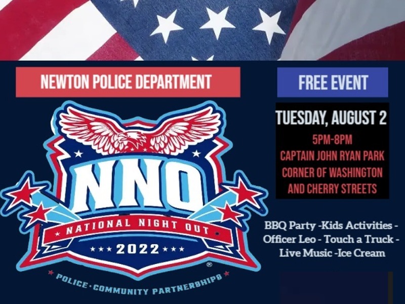 The Newton Police Department will host a free community-building event, National Night Out, on August 2, 5PM-8PM at Captain John Ryan Park, adjacent to Police Headquarters (corner of Washington and Cherry Streets in West Newton). It’s part of a nationwide network of events on the first Tuesday of August each…