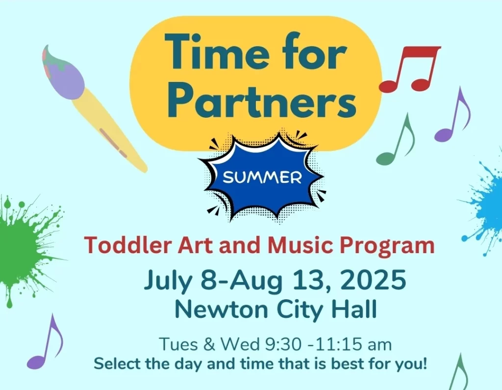 Adult-child pairs can sign up for some quality time making art and music together at City Hall on summer Tuesdays and/or Wednesdays, 9:30AM-11:15AM, July 8 to August 13. Children ages 18 months to 4 years with adults of any age are welcome to join. Sign up at newtonma.gov/culture.