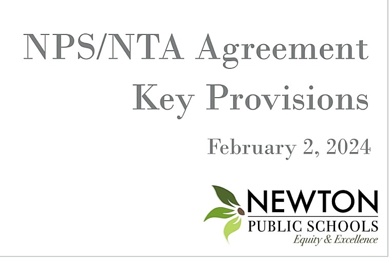 On February 3, Newton Public Schools (NPS) made available a ten-page presentation summarizing the key provisions of the agreement reached on February 2 for a contract between NPS and the Newton Teachers Association (NTA). Superintendent Nolin confirmed that NPS and the NTA also agreed to a return-to-work agreement and two…
