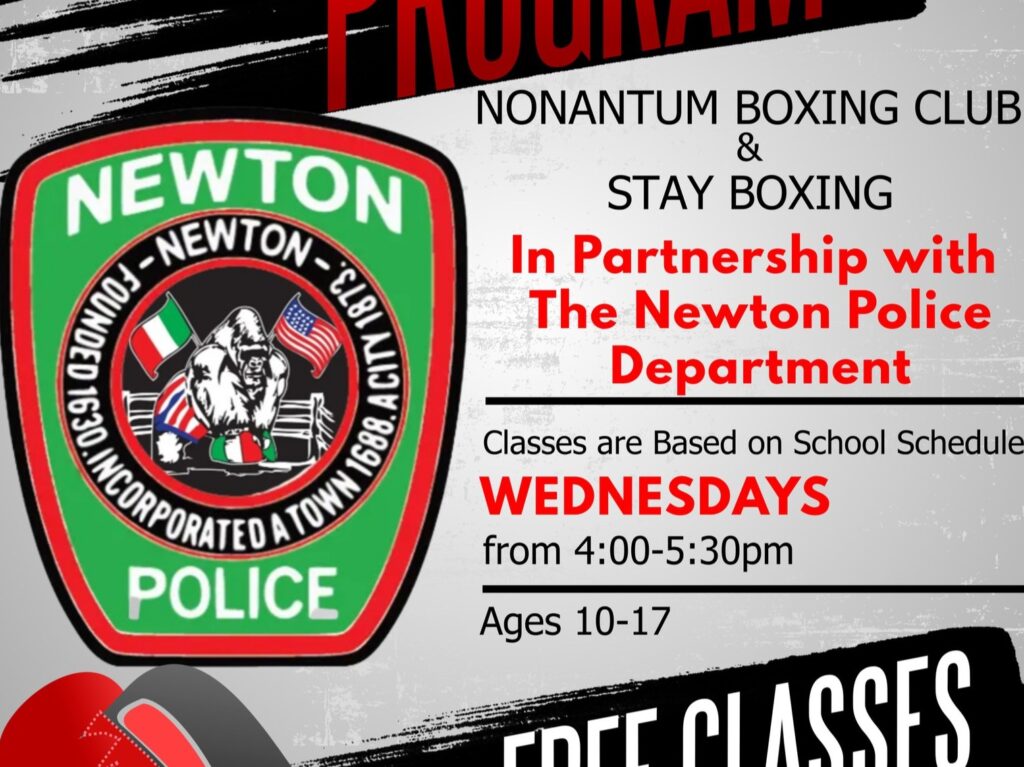 The Newton Police Department hosts a free Afterschool Boxing Program for kids aged 10-17. This program takes place at the Nonantum Boxing Club (75 Adams Street, Nonantum) every Wednesday, 4PM-5:30PM.