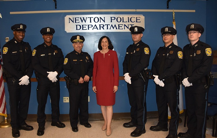 The Newton Police Force has been augmented by the addition of six newly graduated officers, at a time when the force has been reduced to 137 members. On Friday, June 14, five of the new recruits were sworn in by Mayor Ruthanne Fuller and the Acting Chief George McMains. The…