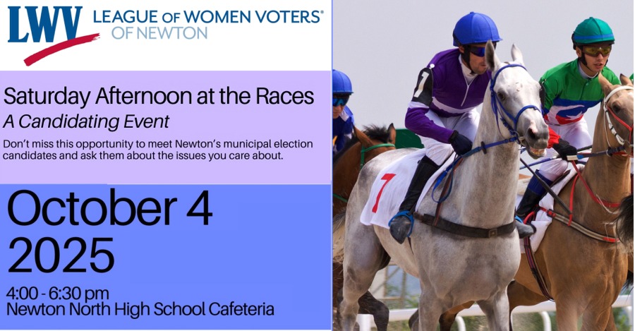 On Saturday, October 4 from 4-6:30PM, the League of Women Voters of Newton, in coordination with the Newton North High School Center for Civic Engagement and Service, and together with its cosponsors (The Village Bank, Fig City News, the Newton Beacon, Charles River Regional Chamber, Green Newton, Newton Council on Aging,…