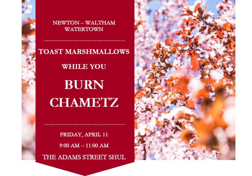 On your most hectic day of the year, why trek to Brighton to safely burn your chametz? This year you can do it right here in Newton, at the Adams Street Shul! In partnership with the Newton Fire Department, this synagogue will be safely toasting kosher marshmallows and burning chametz.…