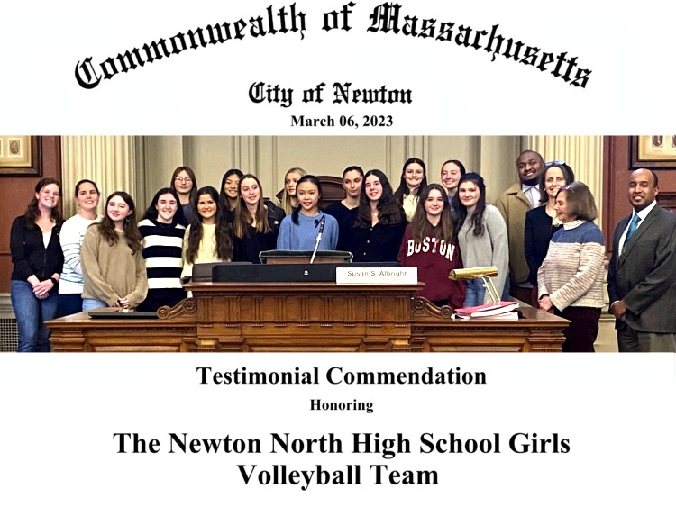 The Newton North High School Girls Volleyball team finished their 2022 season as MIAA Division 1 Massachusetts Champions, after winning 19 of 20 games and losing only 11 sets in the regular season. The team was honored at this week’s City Council meeting with a Testimonial Commendation stating: Completing his…