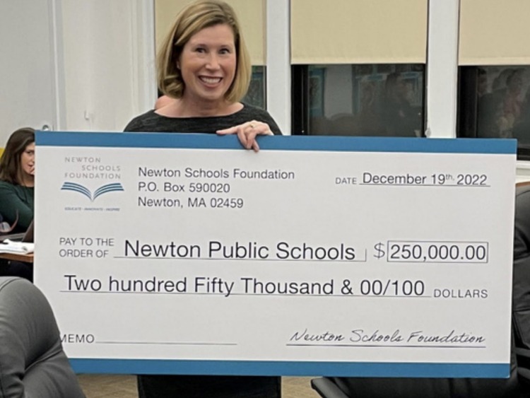 The Newton Schools Foundation recently donated $250,000 — its largest donation ever — to the Newton Public Schools. NSF President Amy Werner presented the check at the December 19 meeting of the Newton School Committee. The funds will support new approaches in the classroom, professional development for teachers, and programs…