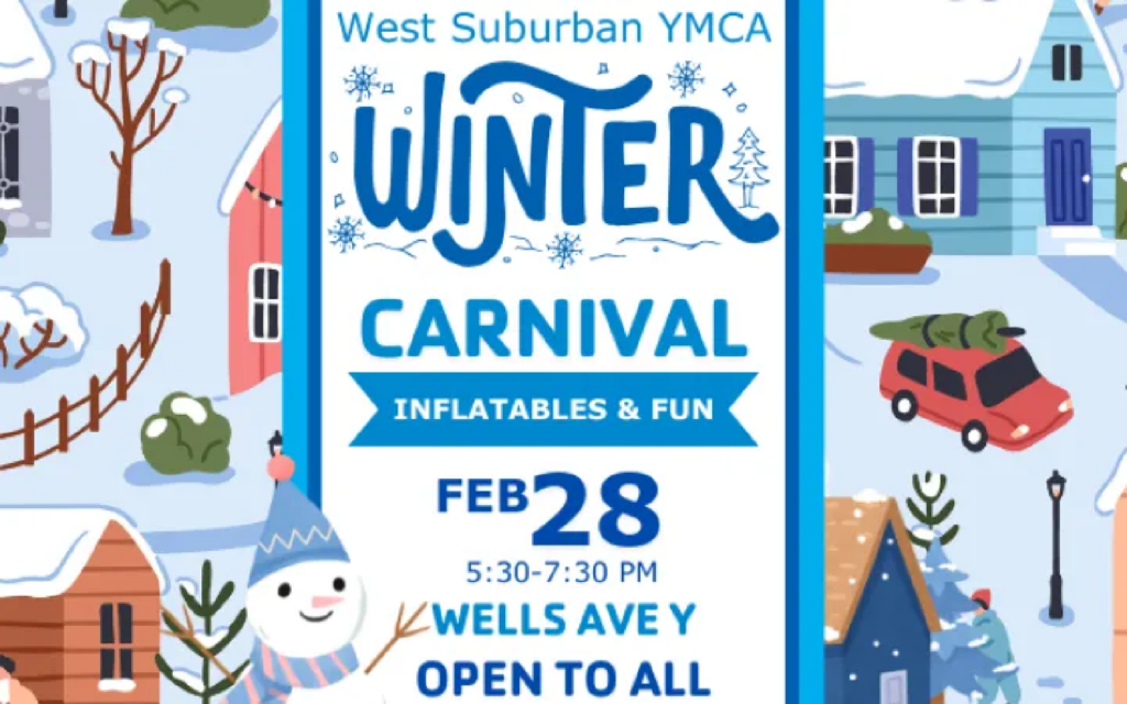 The West Suburban YMCA (YMCA) is hosting a Winter Carnival with inflatable attractions, carnival games, open-play basketball, snacks and more. It will take place on Friday, February 28, 5:30-7:30PM in the Fieldhouse gymnasium at the Wells Ave YMCA (135 Wells Avenue, Oak Hill). Admission is free.