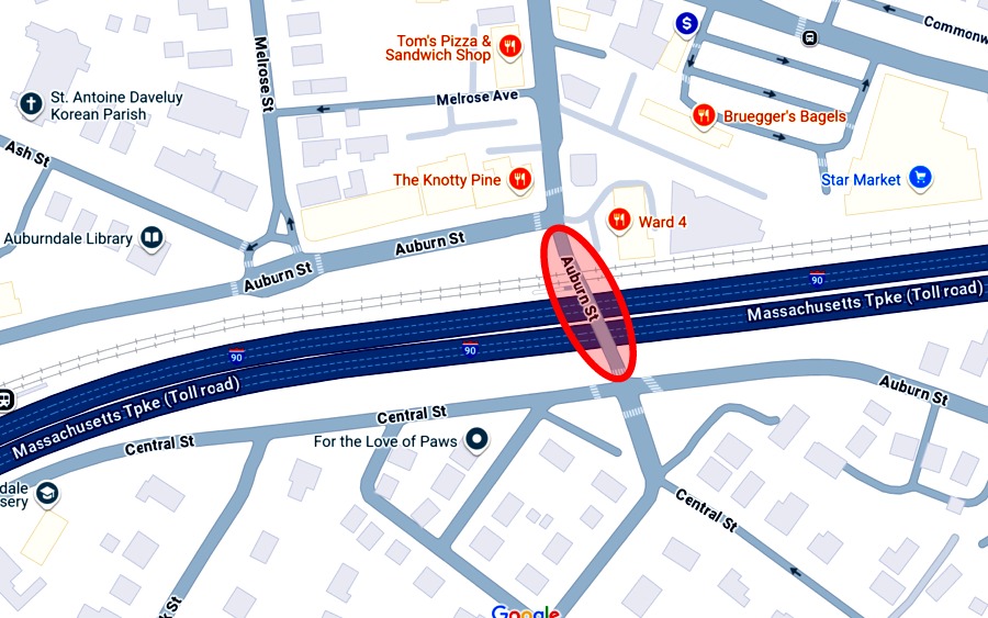 MassDOT has announced that the Auburn Street bridge over the Mass. Pike (I-90) in Auburndale will be closed to motor vehicles from 9AM on Friday, May 16 to as late as 5AM on Monday, May 19. The closure, between Central and Lexington Streets, is needed for the replacement of bridge…