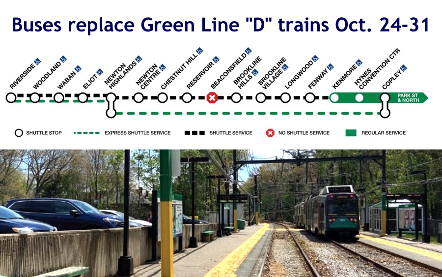 To facilitate the MBTA’s rebuilding of the Green Line D (Riverside) Branch, train service will be suspended October 24-31, replaced by buses — free and accessible — running local and express shuttle routes: Riders may change between Express and Local shuttle bus routes at Newton Highlands. There will be no…