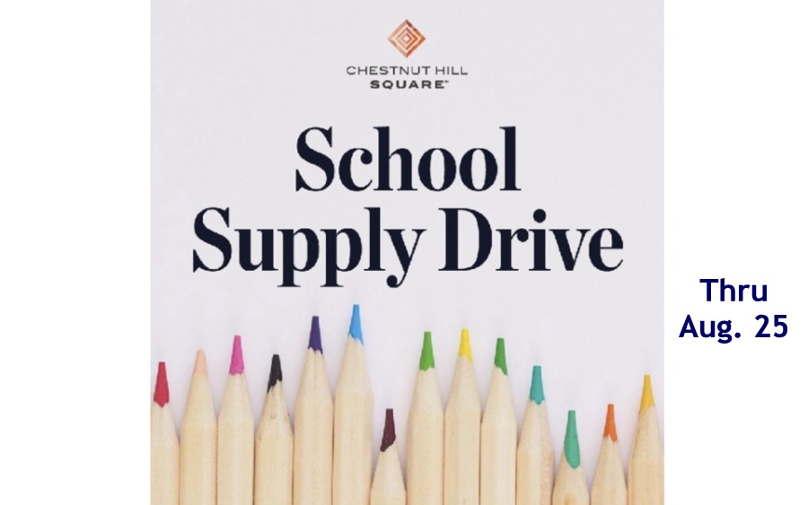 Chestnut Hill Square is hosting a School Supply Donation Drive for School on Wheels of Massachusetts now through August 25. Donations can be dropped off in the marked donation bin located at Free People. Donations of need include: new, unused backpacks, pencils & pencil sharpeners, blue or black inked pens, pencil…