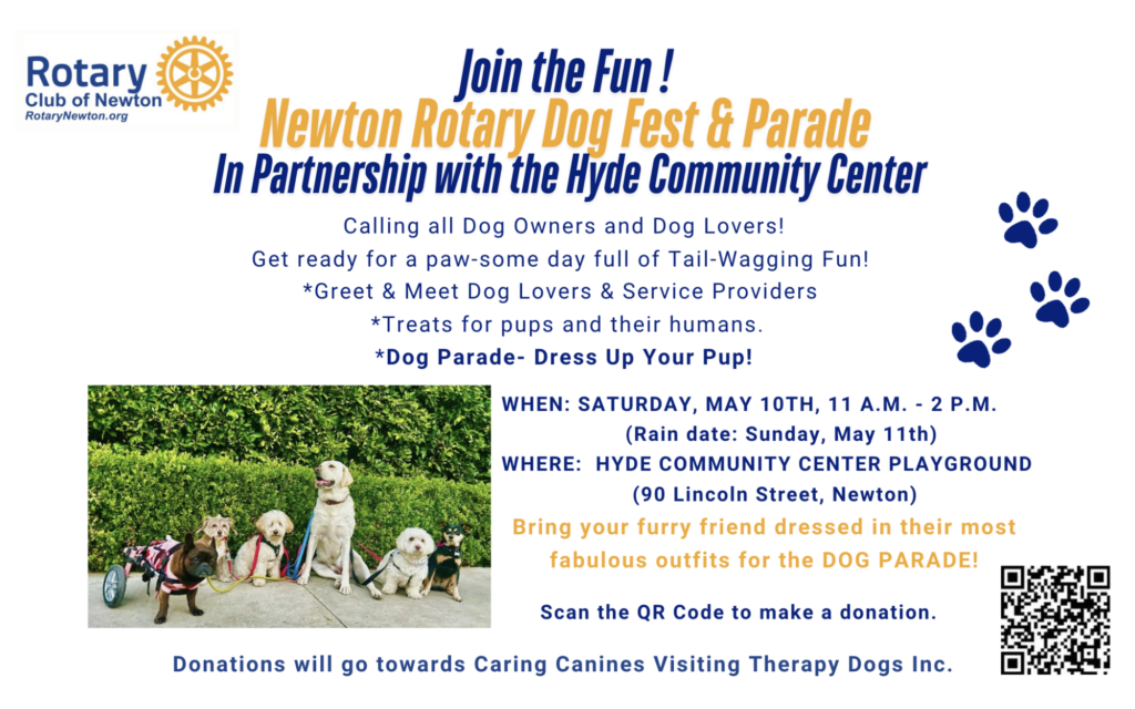 The Newton Rotary Club will host a Dog Fest & Parade where participants can get treats (for dogs and humans), greet & meet dog lovers & service providers, and bring their pup dressed up for a dog parade. Donations will go toward Caring Canines Visiting Therapy Dogs Inc. It will…