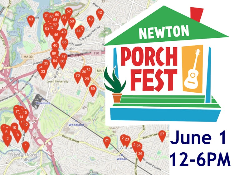 Newton PorchFest will be held on Saturday, June 7, 12-6PM, with free music by over 110 performaners playing in over 60 locations across Auburndale, Lower Falls, Waban, and West Newton. All events are free and open to the public. View the schedule and map here. Newton Porchfest is sponsored by…
