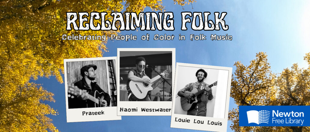 On Sunday, November 23 from 2PM – 3:30PM, the Newton Free Library (330 Homer St, Newton) will host Reclaiming Folk: Celebrating People of Color in Folk Music, featuring Naomi Westwater, Louie Lou Louis, and Prateek. From Reclaiming Folk: This is an event series that celebrates and honors people of color (POC) in…