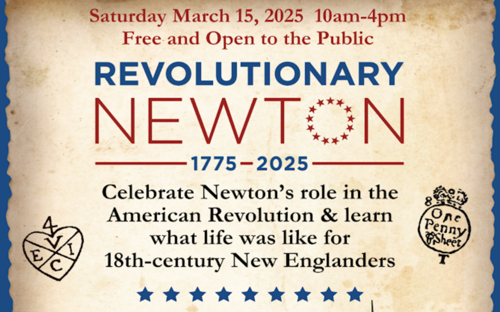 Historic Newton will host Revolutionary Newton, an event where participants can experience revolutionary life through period-specific activities and listening to reenactors describe their lives during the revolution. It will also include music, food, scavenger hunts, and more. The event will take place on Saturday, March 15, 10AM-4PM at the Durant-Kenrick…