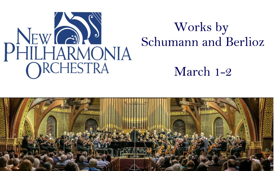 New Philharmonia Orchestra will host a concert where they will perform Robert Schumann’s Symphony No. 4 and Hector Berlioz’s Harold in Italy, with guest violist Danny Kim. The concert will take place on Saturday, March 1 at 7:30PM and Sunday, March 2 at 3PM at the Grace Episcopal Church (76…