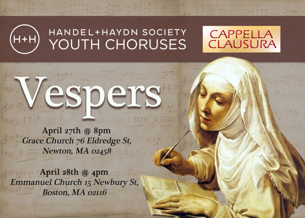 Cappella Clausura will collaborate with Handel & Hayden Society’s Youth Choruses to perform Vespers by Chiara Margarita Cozzolani, in a concert performed twice: Vespers is a piece performed by Cappella Clausura when the group was first formed, and these performances of it will be Amelia LeClair’s final performances as Artistic…