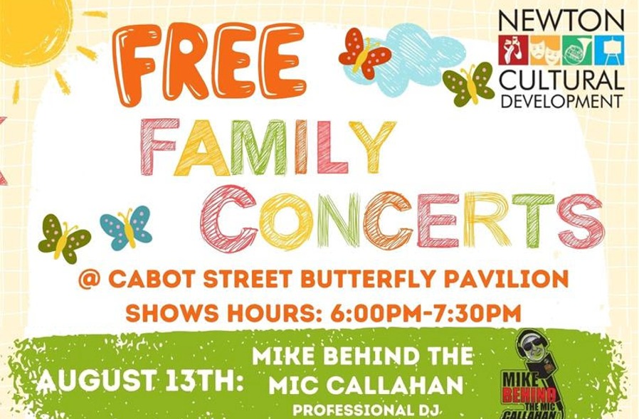 Newton Cultural Development will present a free family concert by Mike Behind the Mic Callahan on Wednesday, August 13, 6PM-7:30PM at the Cabot Street Butterfly Pavilion (101 East Side Parkway). Grab a blanket, pack a picnic, and enjoy an evening of entertainment.