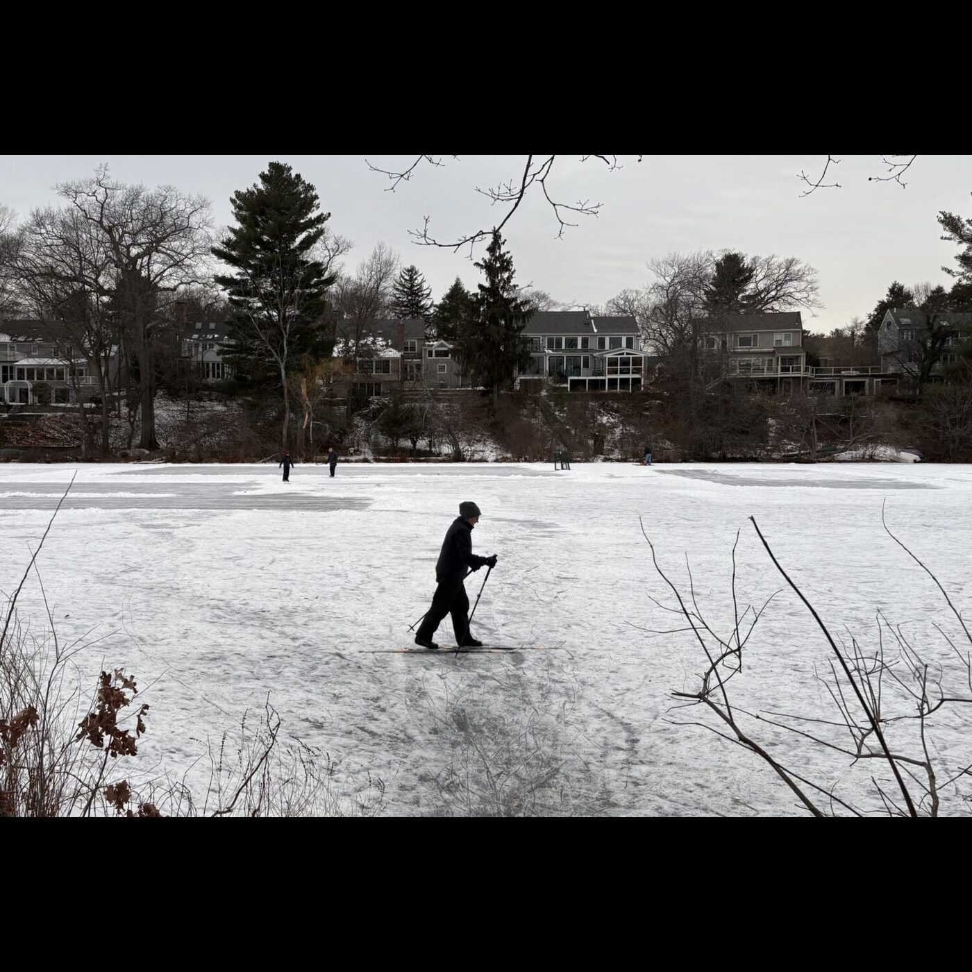 Today we’ll be talking about recreational hockey enthusiasts, those struggling to find balance, and even a few four-legged cold-weather fans enjoying a rare day on the ice at Auburndale Cove, the only authorized outdoor skating area in Newton.